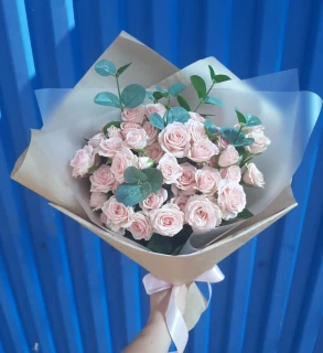 "Розовый сон" - букет, который расцветает нежными розовыми розами, символизирующими нежность и чувственность. Композиция украшена свежей зеленью, которая придает букету естественности и гармонии. Упаковка из крафтовой бумаги добавляет ощущение природной простоты и естественности. Каждый цветок с любовью и вниманием подобран, чтобы передать нежность, радость и чувственность, которые наполняют этот букет. Он идеально подойдет для любого особого случая или просто для того, чтобы подарить радость и улыбку в будний день.